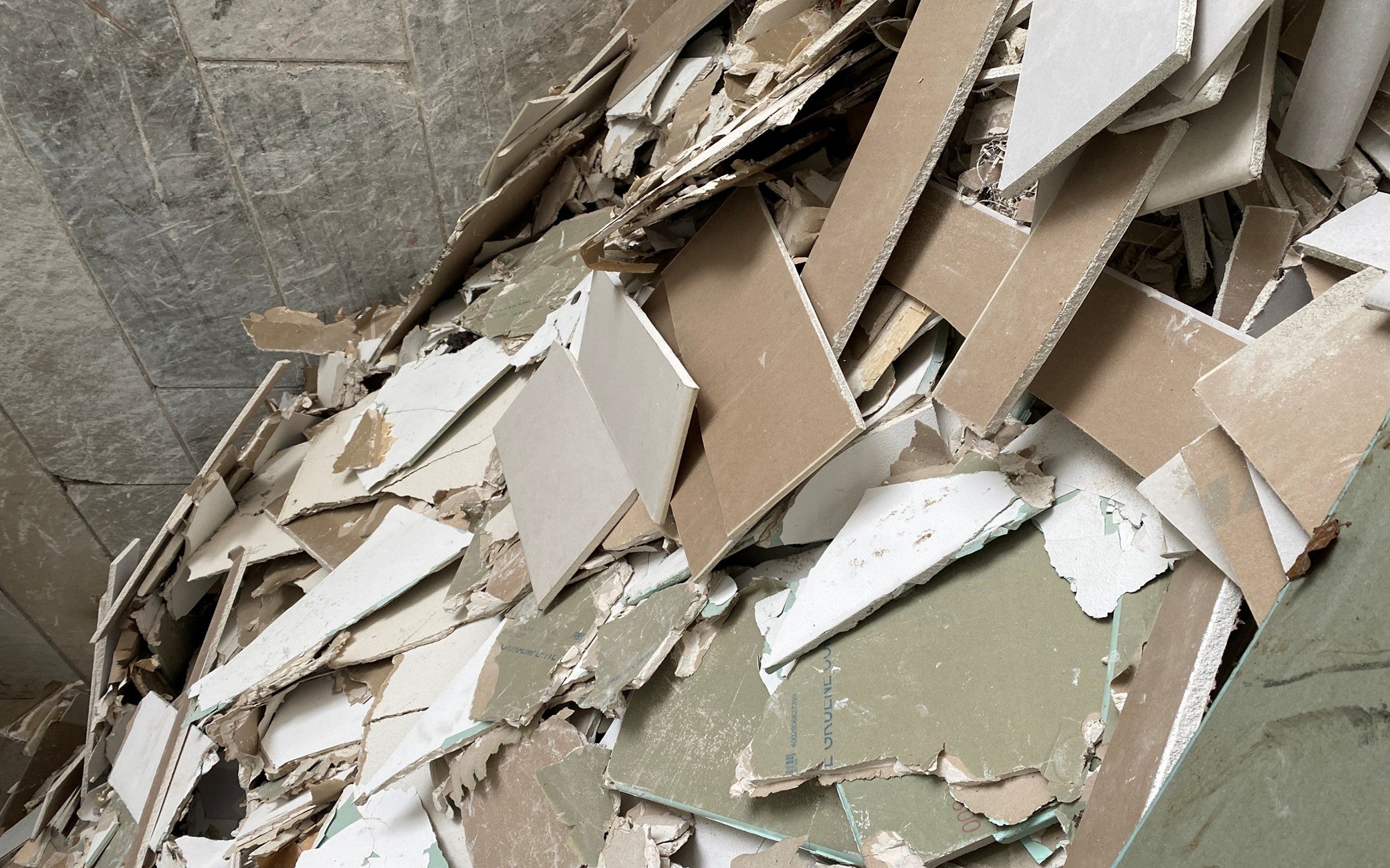 - Rigipslatten mit mineralischen Anhaftungen (z.B. Fliesen)